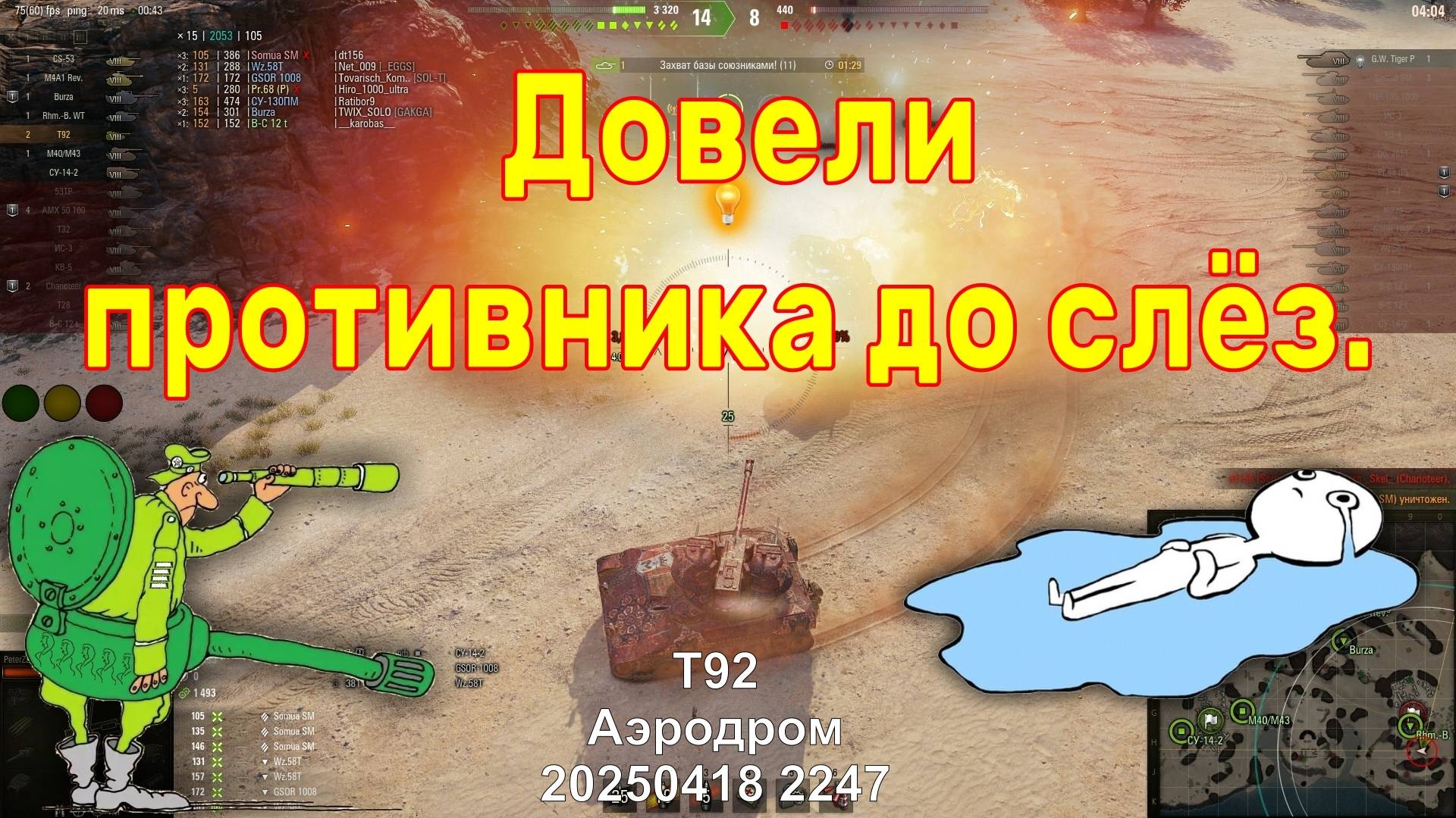 Довели противника до слёз. T92. Аэродром. 20250418 2247.