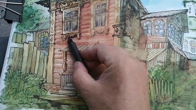 Старый Иркутск Акварель Перо UrbanSketch Watercolor Archisketch Graphics Pen Авторская копия