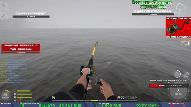 Поддержка донатом https://www.donationalerts.com/r/kalyamba11 Альтернативный донат https://new.donatepay.ru/@1032463 Если стрим лагает,смотри стрим на трово https://trovo.live/s/Kalyamba_na_Ribalke Мой ВК - https://vk.com/kalyantv НИК в игре kalyan11 НАШ ДИСКОРД СЕРВЕР https://discord.gg/mSbnTJK8TB Заказ водоема на 1 час - 500р ( весь стрим 2500р ) Модерка на канале 1200р ( каждая следующая на 100р больше) Озвучка доната на 40р,50р,100р,200р,300р,500р,1000р ✅Призы в рулетке "ЗОЛОТАЯ" ✔ ЗОЛОТО ✔ ПРЕМ ✔ КАТУШКИ РАПТОР 40, АЗИМУТ 10000, СИЛЬВЕР 80, ТАЙГА с 30 ЮБИЛЕЙНАЯ, ✔ ПАЛКИ ПИЛКЕРНАЯ, ДОНКА МОРСКИЕ, ✔ РОД ПОД, СТУЛЬЯ ✅Призы в рулетке СТАНДАРТ : ✔ катушка "РАПТОР 40" ✔ катушка "АЗИМУТ 10000" ✔ катушка "ТАЙГА С30, С40, С30 (юбилейная)" ✔ катушки 60 для медного ( ЭВИИ, НАТОРЫ, ГОЛДА, и тд) ✔ ПИЛКЕРНОЕ УДИЛИЩЕ КОРОЛЕВА ОКЕАНА ✔ Морское Донное удилище ✔ прем ( 3, 7, 30 дней) ✔ золото ( 1, 3, 5, 10, 20 ,50) ✔ билет на море ( 1, 3, 5 дней) ✔ голд наживка и др. ✅Призы в рулетке "СТАРТОВАЯ" ✔ катушка "silver80" ✔ катушка "БЕЛЫЙ КАЛИБР" ✔ катушка "Черный калибр" ✔ катушка "Протон" ✔ катушка "Нарга 6000" ✔ Набор Фидерист и спинингист ✔ Карповик Фортуна ✔ фидерные удилища ✔ прем, золото, алкашка, наживки и тд P.s Рулетка это не казино, а награда за поддержку стримера. Вечный ТОП ПОДДЕРЖКИ (11.05.2024) 1. Dimon_pokemonchik 119 784 2. Interceptor 75 508 3. Skreb79 71 261 4. une personne 68 619 5. Нарвал77 31 550