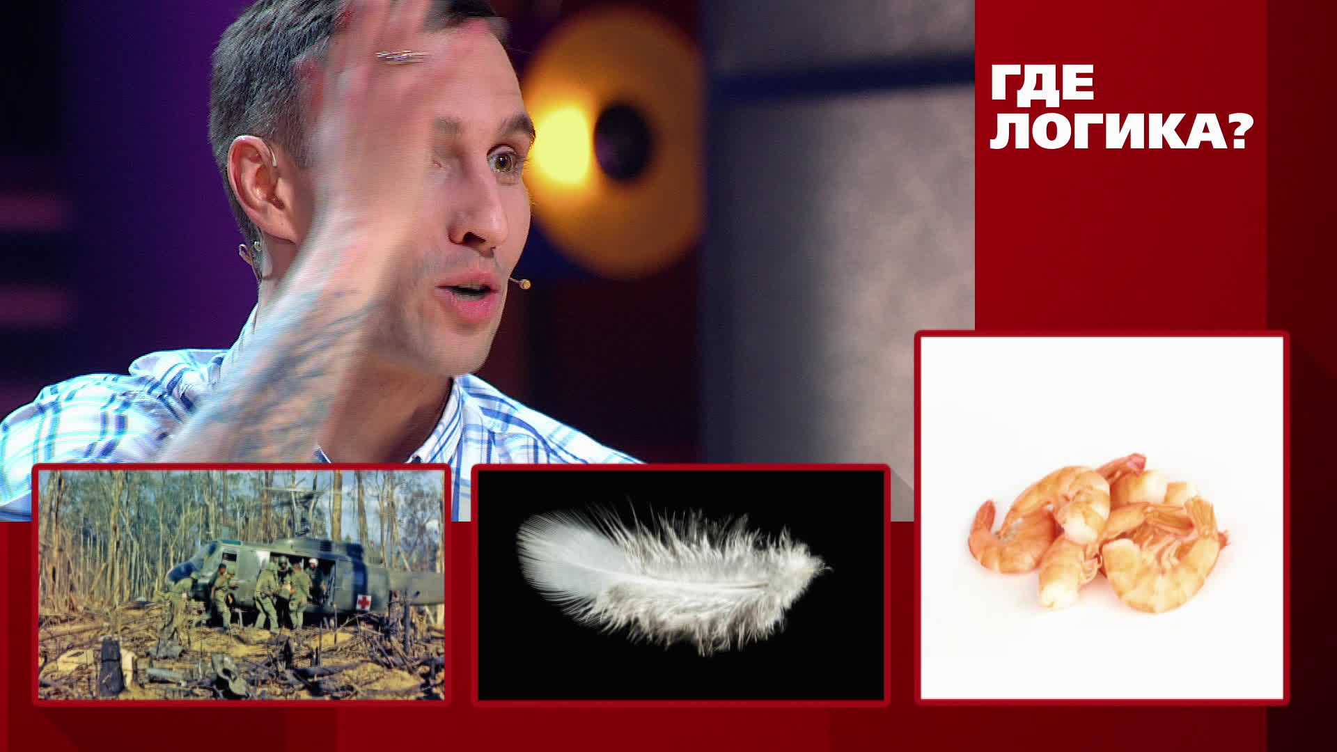 В этом выпуске шоу «Где логика?» в интеллектуальном поединке сразятся Елена Бирюкова с супругом Ильей против Алексея и Ольги Смирновых.