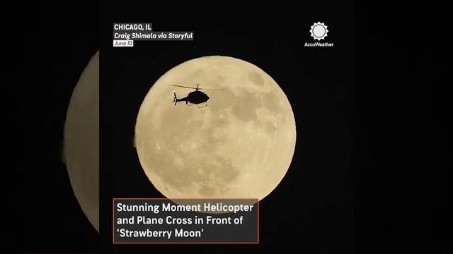 Видео из Чикаго запечатлело одновременный пролёт вертолета и самолёта на фоне полной луны
