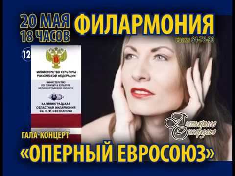 При поддержке Генеральных консульств, Литвы, Польши в Калининграде, канцелярии отделения в Калининграде Посольства Латвии в РФM «Оперный Евросоюз» Гала-концерт Илона Багеле (меццо-сопрано, Латвия) Агне Сабулите (сопрано, Литва) Бартоломей Хоронжи (тенор, Польша) Концертный духовой оркестр и солисты Калининградской филармонии В программе: арии, дуэты, сцены, оркестровые фрагменты из опер, оперетт и мюзиклов русских и зарубежных авторов Калининградская областная филармония им. Е.Ф. Светланова http://kenigfil.ru/ https://vk.com/kenigfil https://twitter.com/kenigfil https://www.facebook.com/kenigfil https://www.instagram.com/kenigfil39