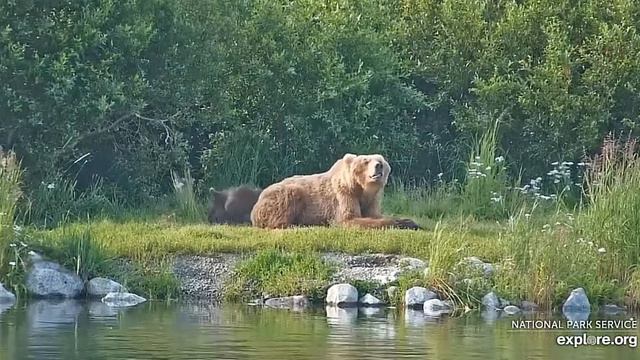 Видео записано с прямой трансляции с https://www.youtube.com/watch?v=nzzBwdxfpqo Kat's River View - Katmai National Park, Alaska 2023 powered by EXPLORE.org - Вид на реку Кэт - Национальный парк Катмай, Аляска EXPLORE.org Место, где река Брукс впадает в озеро Накнек в национальном парке Катмай на Аляске, является популярным местом для медведиц и их детенышей, которые учатся охотиться
