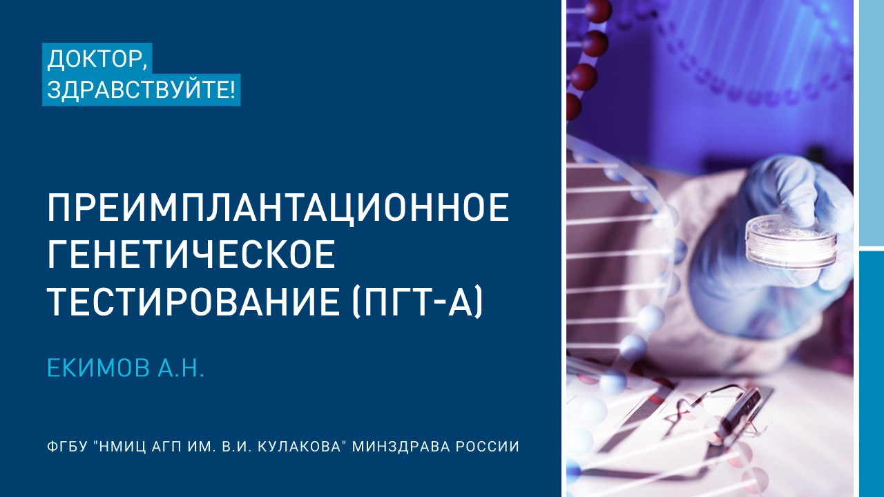 Преимплантационное генетическое тестирование (ПГТ-А) – тема нашего сегодняшнего разговора с руководителем группы преимплантационного генетического скрининга Лаборатории молекулярно-генетических методов Института репродуктивной генетики ФГБУ «НМИЦ АГП им. В. И. Кулакова» Минздрава России, секретарем Совета по репродуктивной генетике Ассоциации медицинских генетиков (АМГ), членом консультативного Совета секции «Репродуктивная генетика» Российской ассоциации репродукции человека (РАРЧ), членом Европейского общества репродукции человека и эмбриологии (ESHRE), к.б.н. Екимовым Алексеем Николаевичем.