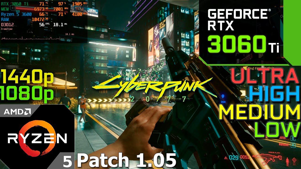 Cyberpunk 2077 - Patch 1.05 : RTX 3060 Ti (All Settings) RTX ON/OFF, DLSS ON/OFF