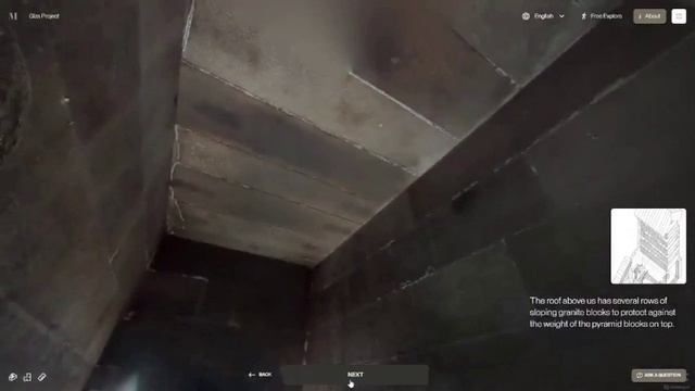 Можно исследовать по заданному маршруту с точками интереса или в режиме свободного перемещения. В каждой комнате есть пояснения о происходящем вокруг. Технологии, пирамида Гиза, древний мир, видосы, пирамиды