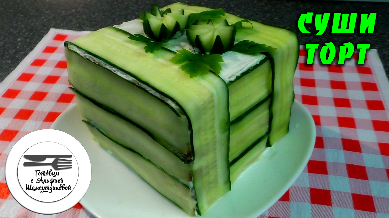 Суши можно приготовить и в виде торта или большого сэндвича, который можно резать порционно. Готовится просто Рецепт: хлеб тостовый 5 шт сливки 35% 150 мл сыр сливочный универсальный Violette 250 гр хрен 1 ст. л. форель малосоленая 150-200 гр листы нори 2 шт огурец