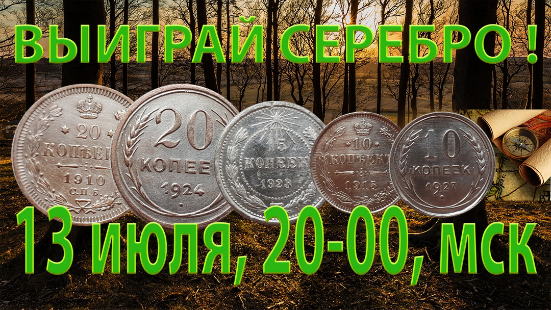 ПРИГЛАШАЮ НА РОЗЫГРЫШ 5-ти серебряных монет 13 июля, в 20-00 по московскому времени на канале ДИВ Кладоискатель - https://www.youtube.com/channel/UC17Jf_I1V5-OuE0vHf3NLdA ВНИМАНИЕ! Для участия в розыгрыше ОБЯЗАТЕЛЬНО подписаться на канал ДИВ Кладоискатель! #розыгрыш #серебро #стрим 1-й лот: 5 серебряных монет: 20к 1910, 20к 1924, 15к 1923, 10к 1915, 10к 1927. Участвует 25 билетов (возможно и больше, по желанию зрителей). После покупки 25-ти или более билетов состоится розыгрыш! Монеты в очень хорошем состоянии, стоит за них побороться! Покупка более 1-го билета повышает ваши шансы в победе! 2-й лот: Погодовка монет СССР с 1926 по 1957 годы (26 штук). Участвует 12 билетов (или более). После покупки 12-ти или более билетов, состоится розыгрыш! Покупка более 1-го билета повышает ваши шансы в победе! ДОНАТ НА ПОДДЕРЖКУ КАНАЛА ДИВ КЛАДОИСКАТЕЛЬ - https://www.donationalerts.com/r/kladoiskateldiv ВНИМАНИЕ! Победителю розыгрыша дополнительно и бесплатно будет подарен фирменный магнитик на холодильник от канала ДИВ Кладоискатель!! Для участия в розыгрыше монет нужно произвести платёж (в размере 100 рублей за один билет) на следующую карту: Донат на розыгрыш: на карту СБ 4274320065012422 (100р - один билет за участие в розыгрыше). ВНИМАНИЕ! Для участия в розыгрыше нужно подписаться на канал ДИВ Кладоискатель и нажать на колокольчик, чтобы не пропустить следующие розыгрыши! Участвовать в розыгрыше можно только из России. Розыгрыш состоится, когда закончатся все билеты. ВНИМАНИЕ! Обязательно при переводе, в сообщении пропишите ваш ник в чате и ваше реальное имя, а так же какой вы хотите номер выбрать из свободных. Выбранный вами номер будет участвовать в розыгрыше в конце стрима (или ранее). Если вы переведёте 200 или более рублей, то получаете 2 и более номеров, что увеличивает ваши шансы победить. #стрим #розыгрыш #серебро Группа ДИВ Кладоискатель ВКонтакте - https://vk.com/club158555675