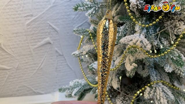 331611 Украшение елочное Сосулька с каплями золотистая стекло 15см