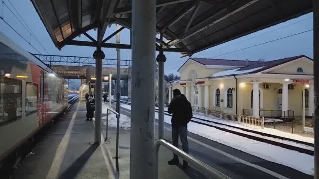 Электропоезд "Ласточка" ЭС2Г-023 (следует рейсом Каннельярви – Санкт-Петербург-Финляндский) прибывает на станцию Белоостров, 18.01.2023 г. #ржд #поезд #ласточка #эс2г #белоостров #санктпетербург #поездароссии