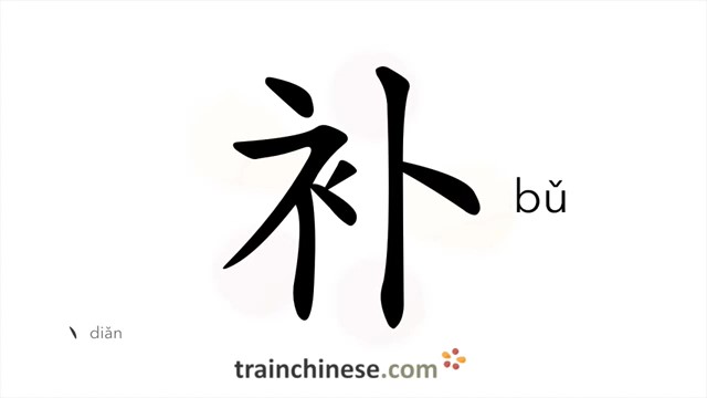 补 (bǔ) mend, make up; to repair; supply; patch