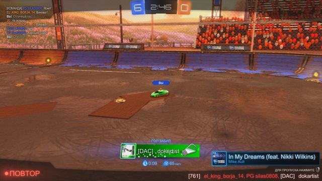Rocket League (2v2) - гол с центра в пустые ворота..
