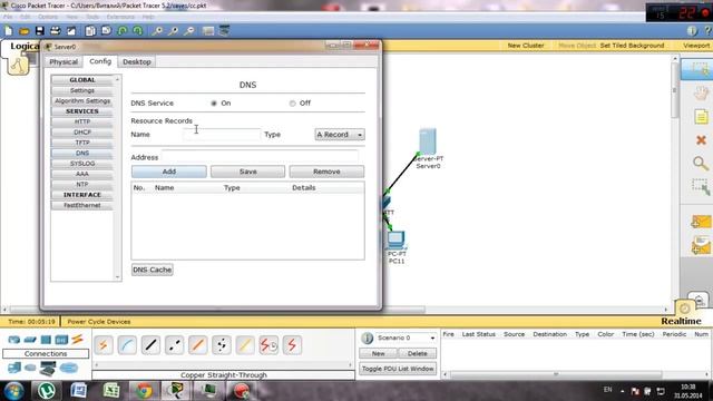 Установите DNS сервер с помощью Cisco Packet Tracer