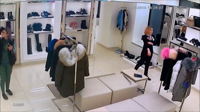 девушка взяла модную обувь и не заплатила