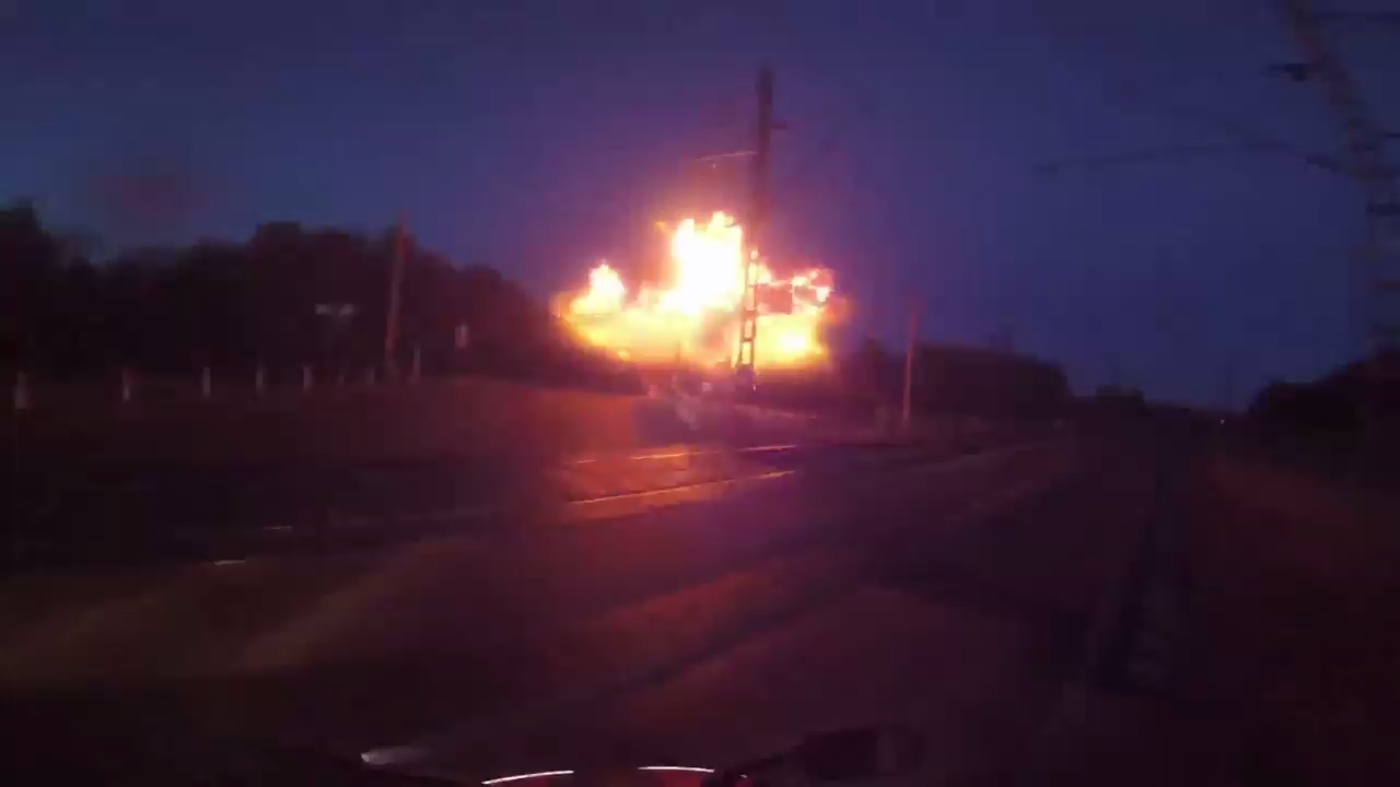 Мотоциклист стал свидетелем мощного короткого замыкания на телефонном столбе из-за работы неквалифицированных связистов возле железнодорожного переезда в Петрозаводске. #замыкание #связисты #столб