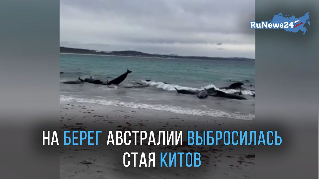 На берег Австралии выбросилась стая китов