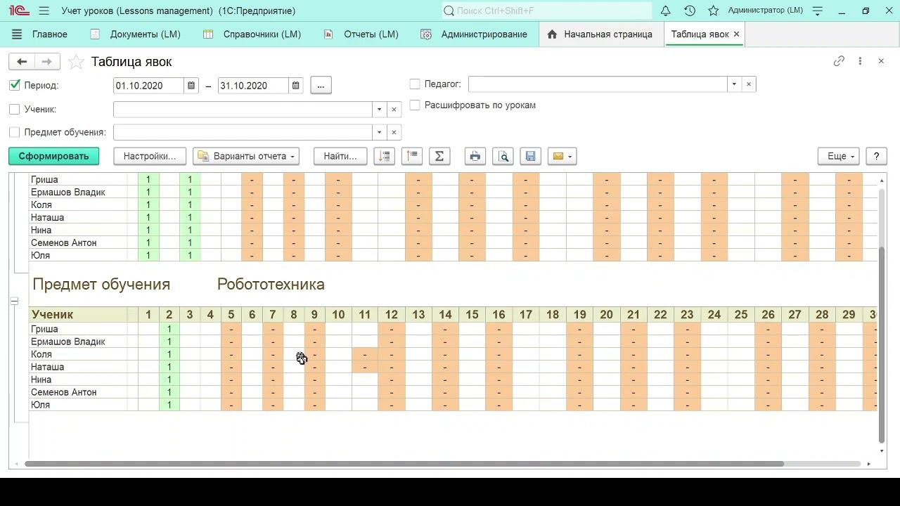 Учет занятий и уроков в 1С: 8.3. Отчеты