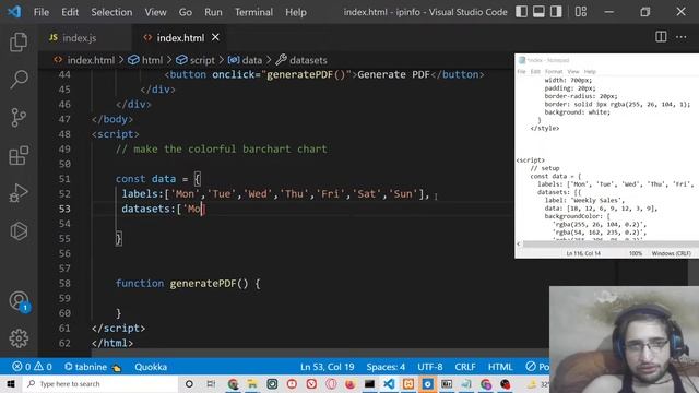 jsPDF Chart.js Tutorial to Export Colorful Bar Chart inside PDF Document in Browser Using Javascrip