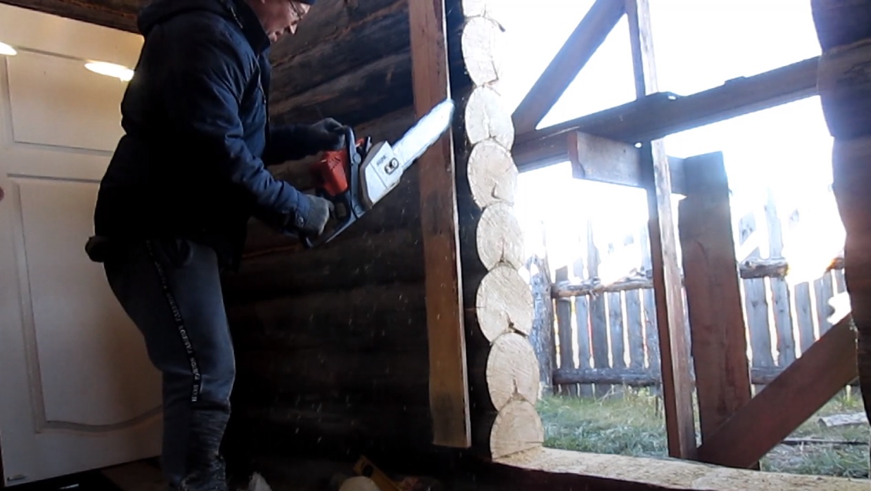 Делаю дверь в дом, так как не удобно заходить в узкий пропил, конечно все делаю без света, поэтому все операции делаю бензопилой, пропилил дверь, выпилил пазы, вот смотрите что получилось #строикадома#дверь#дом#своимируками