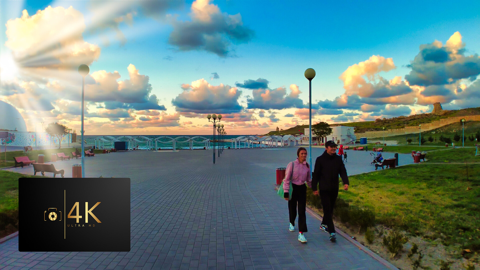 Парк Ахматовой и пляж Солнечный. Прогулка по городу. Осень Севастополь 4К
