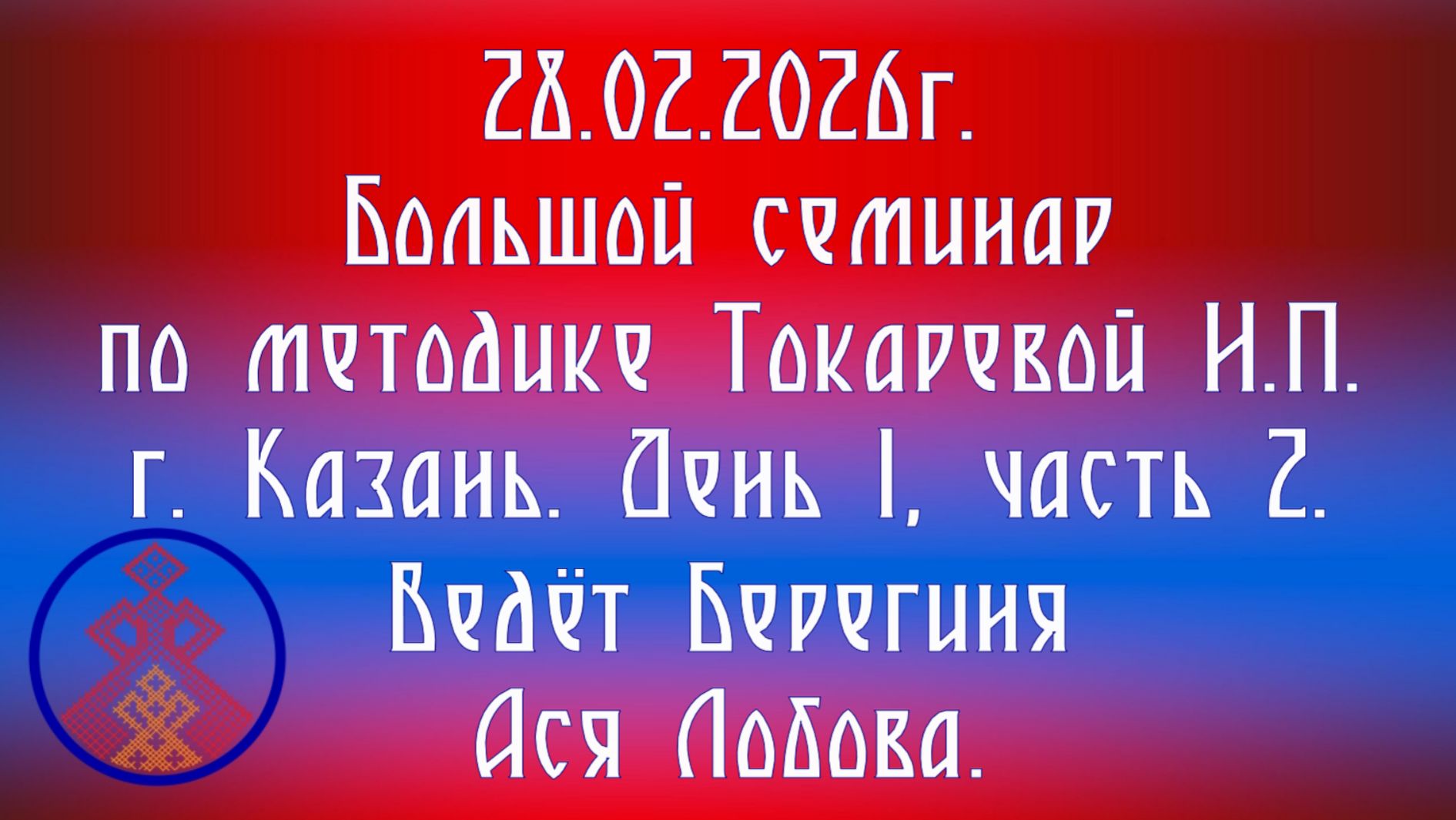 28.02.2026. Большой семинар по методике Токаревой Н.П. г. Казань. День 1, ч. 2. Берегиня А. Лобова.