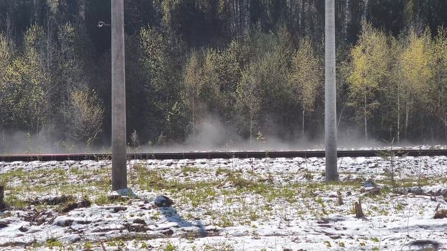 Снег тает и идёт пар