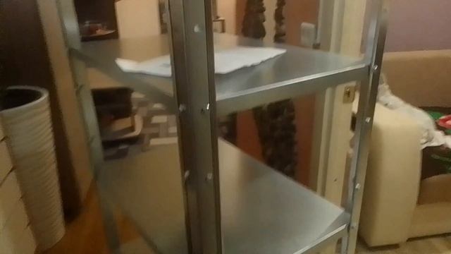 Собрали стеллаж, очень удобный, металлический, на балкон