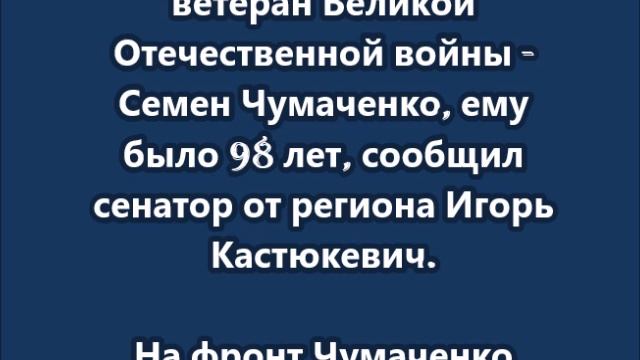 Скончался последний в Херсонской области ветеран Великой Отечественной войны - Семен Чумаченко
