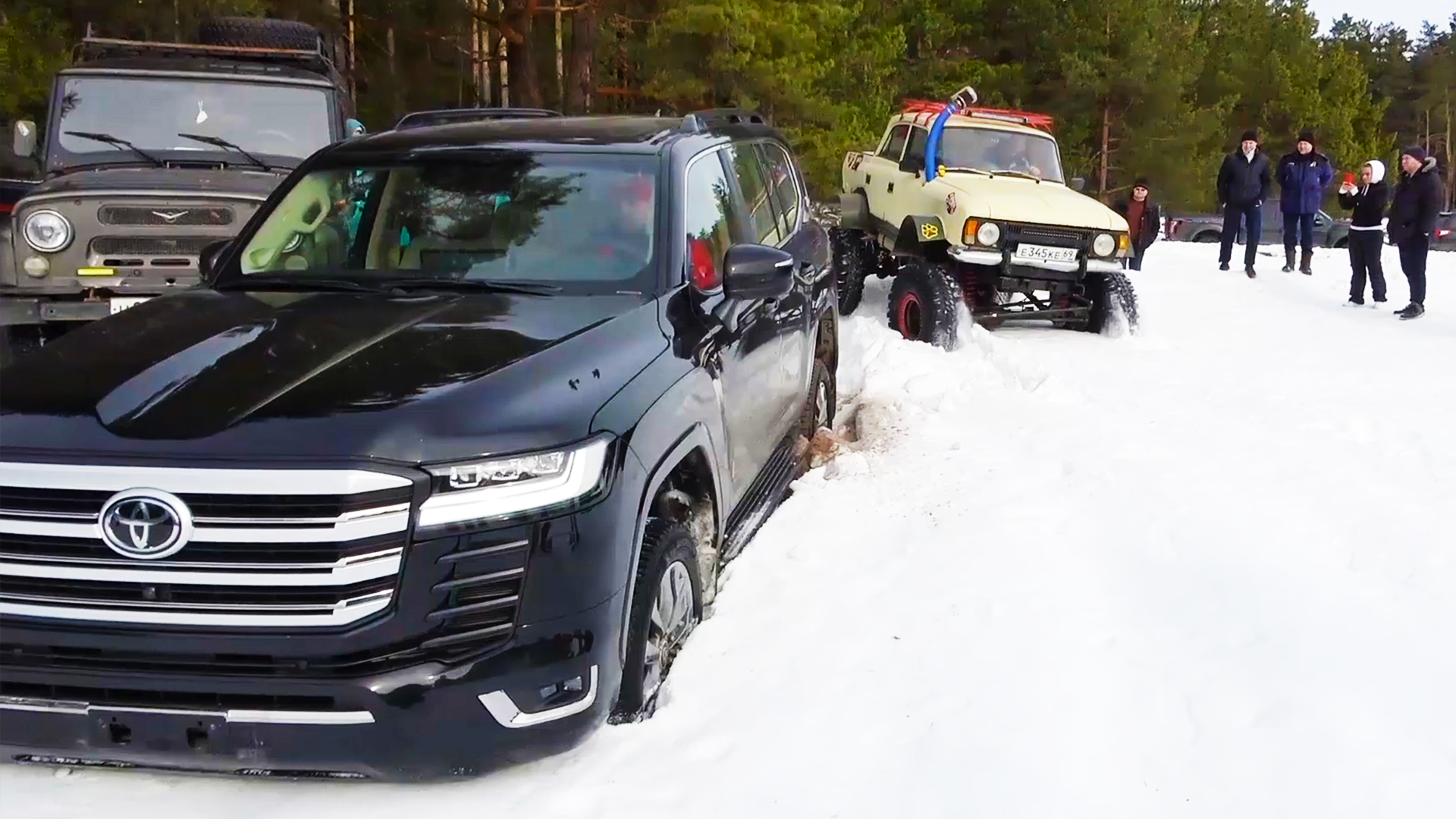 Toyota Land Cruiser 300 имеет полный привод и двигатель мощностью около 400 л.с. но даже это не позволяет ей пробиться через плотный снег. Дорогущий внедорожник быстро увяз на бездорожье. Стоимость такой Тойоты приближается к 20 000 000 рублей.