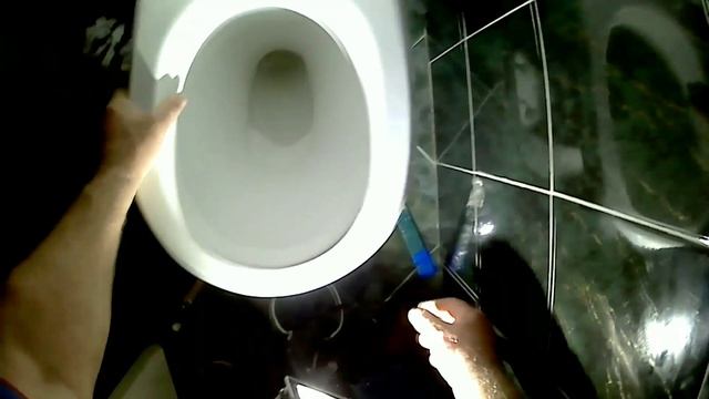 Чтобы поставить новый унитаз, надо снять старый. Как оказалось, болты старого унитаза не откручиваются (заржавели). Пришлось срезать болгаркой. И, кроме этого, унитаз посадили на хорошую бетонно- клеевую основу. Необходимо отрывать или разбивать унитаз. (Можно повредить плитку пола). Для того, чтобы поставить новый унитаз, срезаем эту мощную бетонно- клеевую глыбу, тщательно выравниваем пол в месте установки нового унитаза.