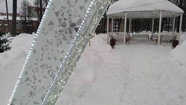 Ратонда с лавками в центральном парке Павловского Посада обновилась светящийся рамкой.