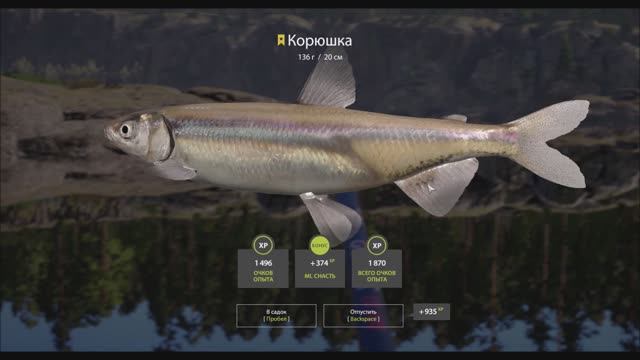 Корюшка, трофейная рыба 136 грамм, Ладожское озеро, игра Русская рыбалка 4, 2025 год