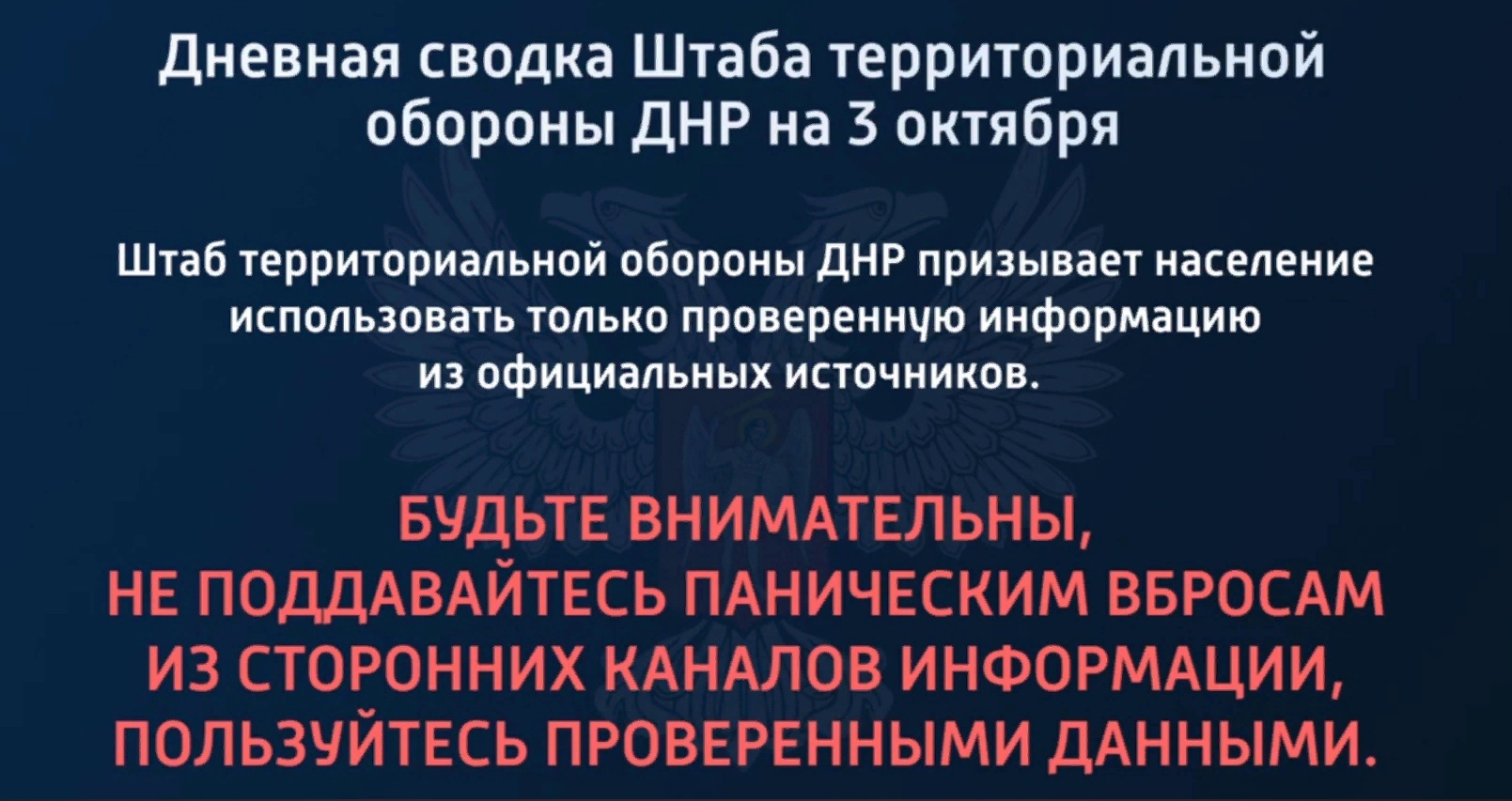 Дневная сводка Штаба территориальной обороны ДНР на 03.10.2022
