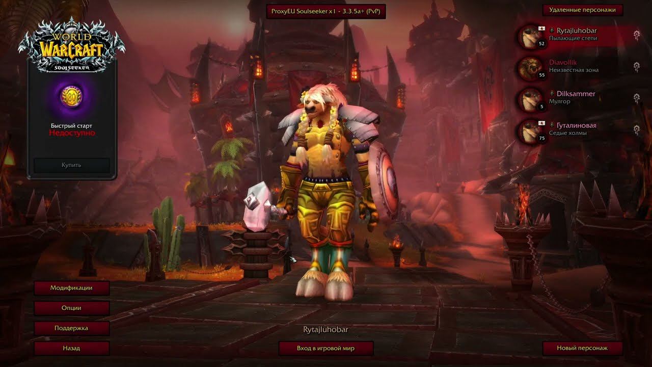 хардкор от первого лица World of Warcraft WOTLK x1 Sirus SOULSEEKER качаемся занова воин 52-54 лвл
