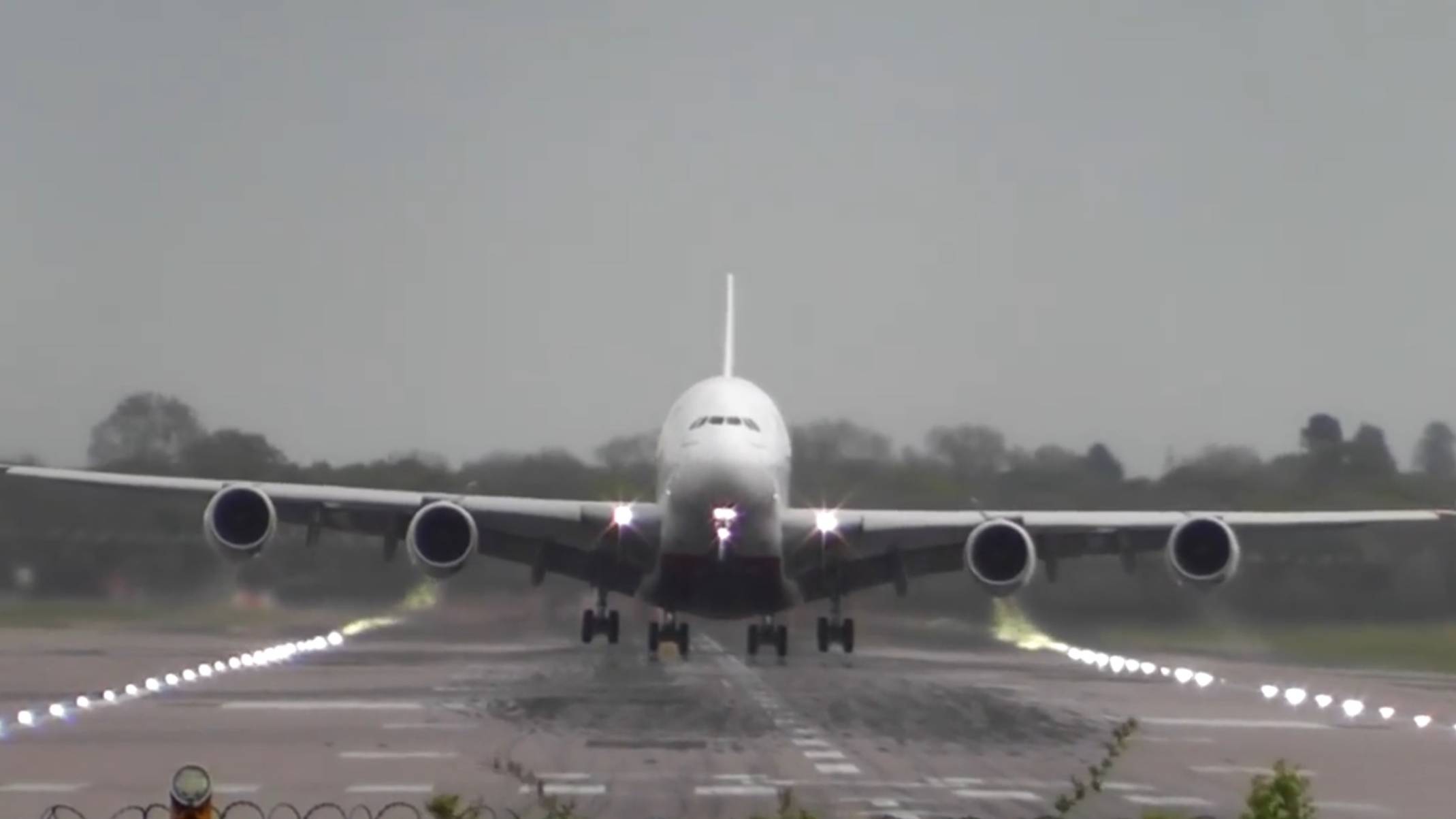 Подборка видео взлета и посадки самолета в сильный туман и проливной дождь.