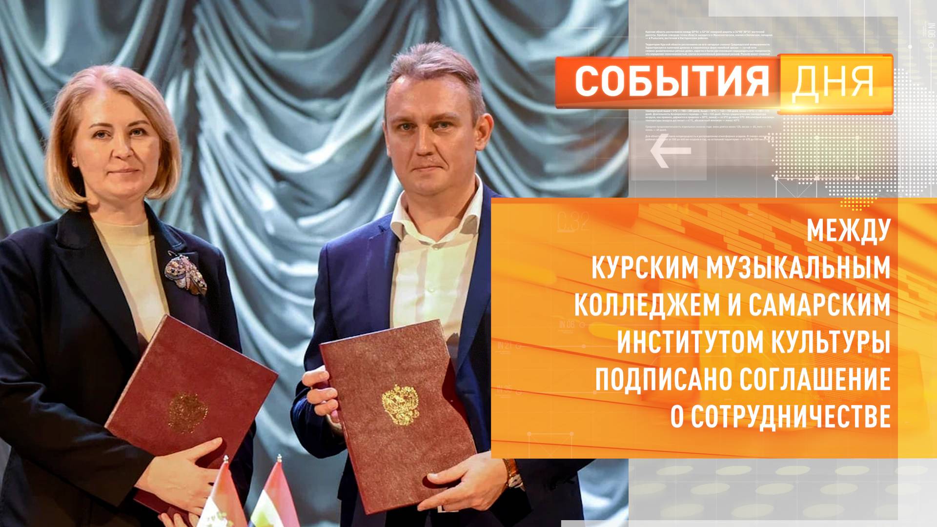Связь двух регионов всё крепче. Между Курским музыкальным колледжем имени Свиридова и Самарским государственным институтом культуры подписано соглашение о сотрудничестве. Дружба между учебными заведениями завязалась по инициативе губернатора нашего региона Александра Хинштейна.