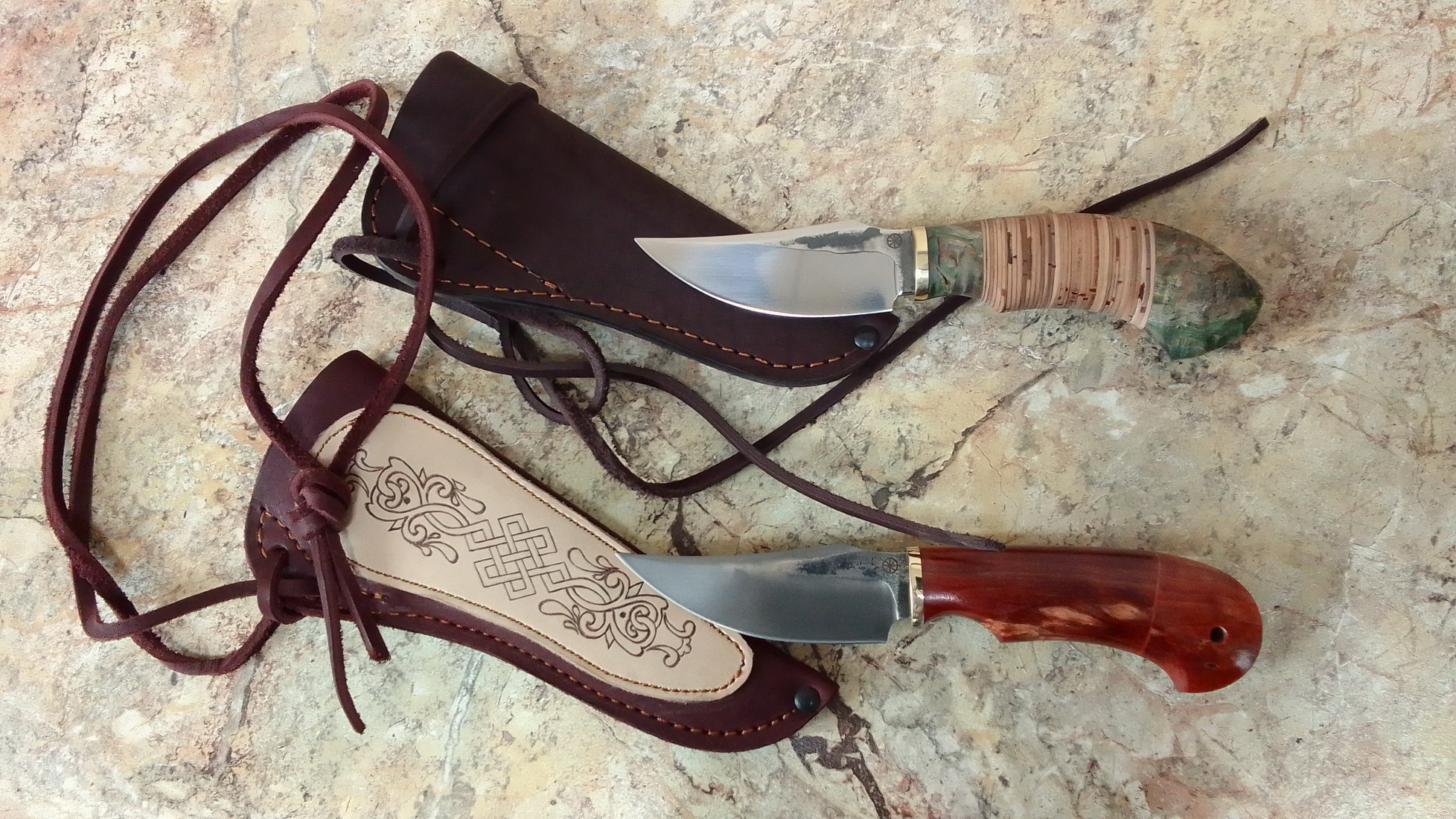 Приветствуем! Ножи этой модели - это маленькие и хищные помощники "на каждый день", которые никого не оставят равнодушными. Полезные, удобные, харизматичные - пользуйтесь с удовольствием!! )) Модель: Кусака-1 Монтаж: сквозной Клинок: 1) Клинок: кованая нержавеющая сталь 95х18 (твёрдость 58 HRC), спуски вогнутой линзой и далее режущая кромка 2)кованая сталь х12мф (твёрдость 61 HRC), спуски вогнутой линзой и далее режущая кромка Рукоять: береста, стабилизированная карельская берёза Декорирование: - следы ковки - выжигание по ножнам в средневековом стиле Не является ХО, ножны в комплекте. Размеры в мм: Общая длина - 212 Длина-ширина-толщина клинка - 87-30-3,5 Длина-ширина-толщина рукояти – 115-27-22 ЦЕНА на момент публикации: 4300, 5700 р ВАЖНО!! Оплата доставки (почта, СДЭК) оплачивается дополнительно. И вместе с тем, для активных подписчиков канала (подписка, одобрения, комментарии) при оплате любого количества ножей из наличия доставка по России БЕЗПЛАТНО!! ВНИМАНИЕ!! Вся наша продукция - это ручная работа, а если Вам понравилась модель ножа, но хочется его в каком-то другом исполнении, обращайтесь – договоримся. По всем вопросам и заказу ножей обращайтесь: Олег Александрович Киршанов (директор по развитию ООО «Ножеяр») Тел/whatsapp +79202979792 (c 8 до 19 ч МСК) Вконтакте https://vk.com/nozheyaaar Ярмарка мастеров https://www.livemaster.ru/nozheyaaar Инстаграмм https://www.instagram.com/nozheyaaar НОЖЕЯР: хорошие ножи для хороших людей!