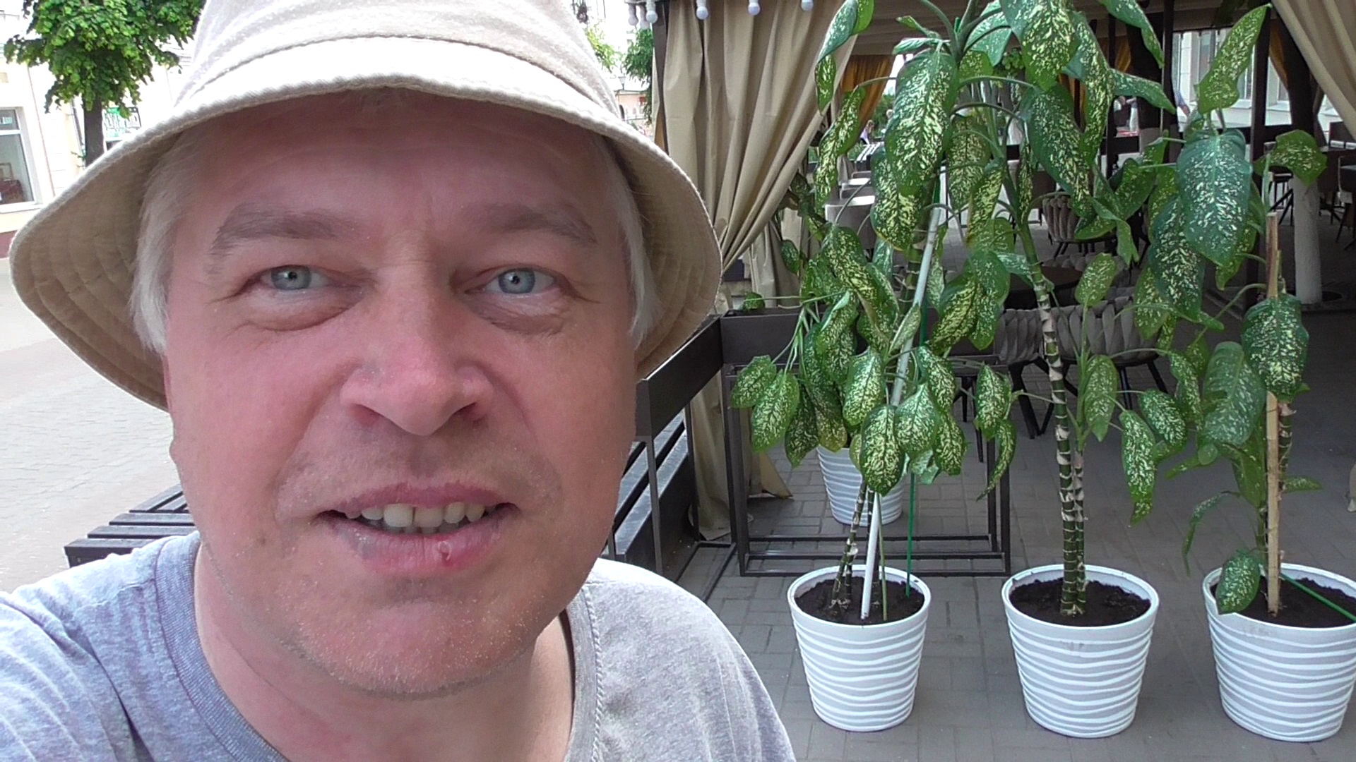 Я увидел цветы комнатные на улице