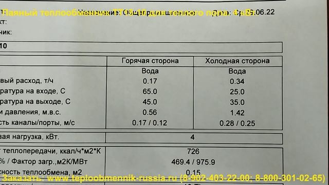 Паяный теплообменник ТТ15-10 для теплых полов. Аппарат обладает следующими характеристиками: 1. Мощность - 4 кВт. 2. Греющий теплоноситель (вода). Вход:65С, Выход:45С 3. В контуре теплого пола залит антифриз (или вода). Его нагреваем с 25С до 35С. Теплоноситель 35С поступает в систему теплых полов. 4. Патрубки: Ду20 ("3/4 дюйма"), наружная резьба 5. Поверхность теплообмена (0,15 м2) - 10 пластин Теплообменник подходит для использования в системах теплых полов площадью до 25 м2. В расчете мы учитываем, что 1м2 теплого пола потребляет 150 Вт. ✅ Пластины теплообменника изготовлены из нерж. стали - AISI316 ✅ Высокие рабочие характеристики: макс. рабочее давление - 30 бар., макс. рабочая температура - 225С. ✅ Гарантия 3 Года ✅ Теплообменник рассчитан для работы в системах Теплых Полов. Этот аппарат обладает очень компактными размерами - вы легко разместите его в коллекторном шкафе или любой нише. Паяная конструкция обладает высокой надежностью. Мы производим пластинчатые теплообменники с 2009 года, поэтому можем предложить вам лучшие условия: ? - Предложим цену на 30% ниже рынка! ??️ - Изготовим ваш теплообменник за 1 день! ? - Надежно упакуем и доставим оборудование на ваш объект! ?? - Доставим теплообменник в любую точку России! ? - Расчет теплообменников ведется в сертифицированной программе расчета. Подберем на любую мощность и посчитаем за 15 минут! ? - Постоянная сервисная поддержка!