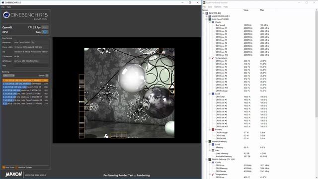 Core i7 6950X @ 4.0 GHz Overclocked - Cinebench with Temperatures on Corsair Hydro H115i Cooler