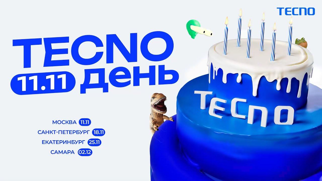 TECNO 6 лет! Мы хотим отметить день рождения вместе с вами. И мы даже лично приедем в гости. Отмечаем TECNO-день в четырех городах: 11 ноября — Москва, ТРЦ Мега Белая Дача 18 ноября — Санкт-Петербург, ТРЦ Галерея 25 ноября — Екатеринбург, ТРЦ Гринвич 2 декабря — Самара, ТРК Космопорт И призы с подарками тоже будем дарить мы: сумки-шопперы, футболки, чемоданы, наушники, смартфоны и другие вкусности от TECNO. Приходите к нам на день рождения! Вы в другом городе? Тогда TECNO всё равно идет к вам! Участвуйте в конкурсе в ВКонтакте и выиграйте брендированную футболку или промокод на скидку 10% при покупке любого устройства TECNO в фирменном магазине OZON. И вишенка на праздничном торте — весь ноябрь вас ждут скидки до 20% у всех наших официальных партнеров. Затуси на TECNO-вечеринке! #TECNO