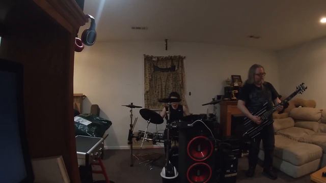 Shadowlord rehearsal 12-14-19. Schecter Synyster Gates Custom and Alesis DM10 MKII Pro