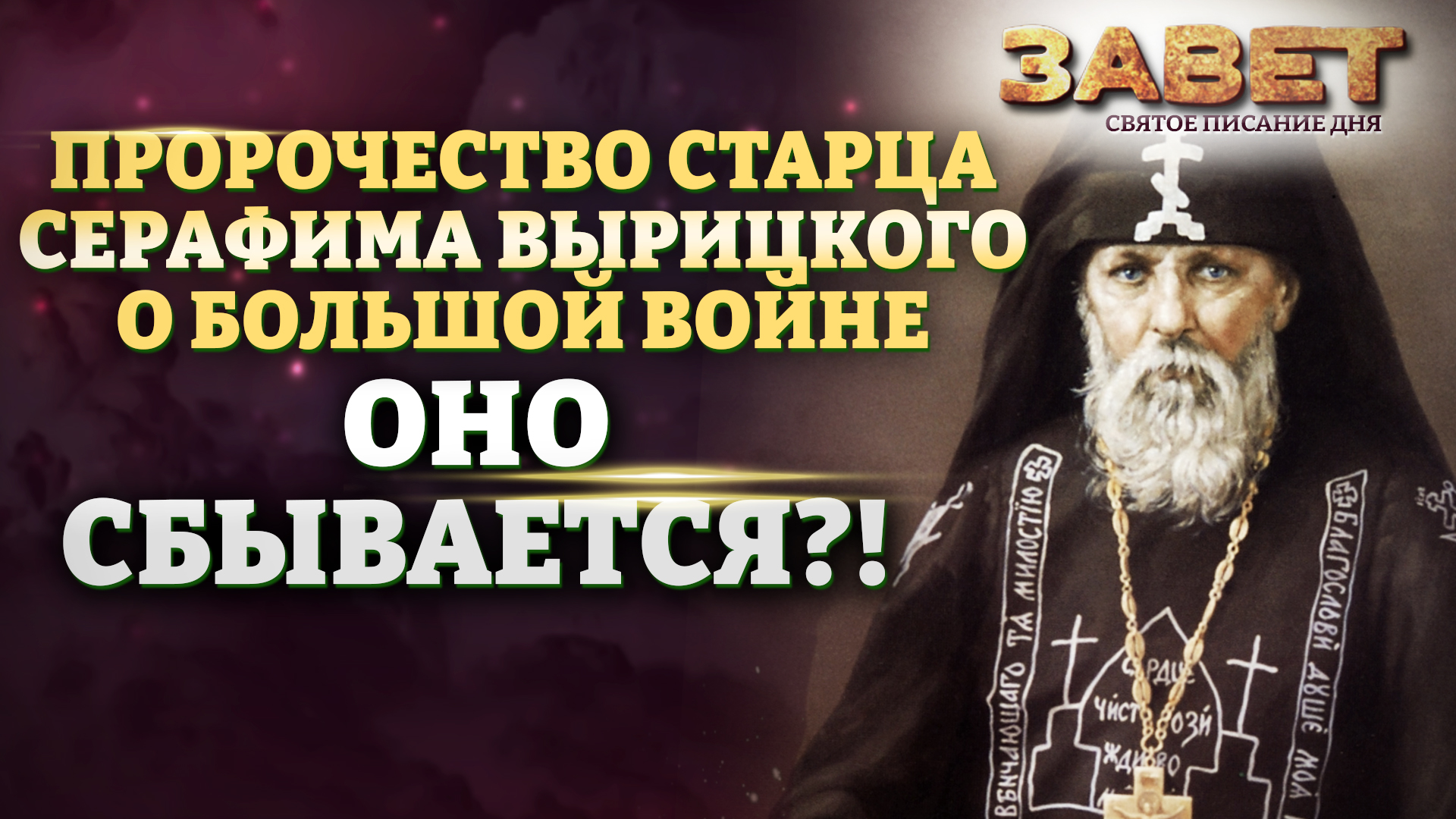 ПРОРОЧЕСТВО СТАРЦА СЕРАФИМА ВЫРИЦКОГО О БОЛЬШОЙ ВОЙНЕ. ОНО СБЫВАЕТСЯ?! ЗАВЕТ