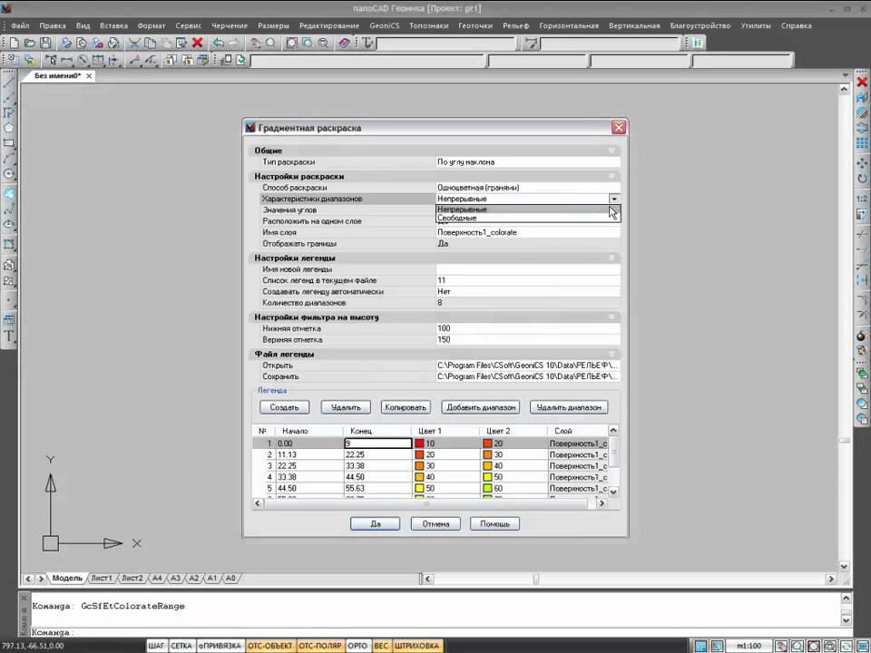 nanoCAD Геоника. Топоплан: градиентная раскраска