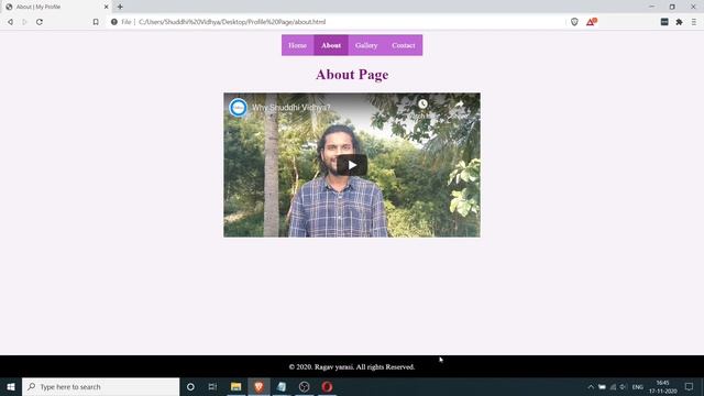 In this video you receive the prompt for the 2nd HTML/CSS Demo Project where you will need to embed a YouTube video on the About page and also add a fixed footer at the bottom of each of the pages and add copyright information on it. English version of this video - https://youtu.be/B_tPec6OkSk Full playlist of this course - https://www.youtube.com/playlist?list=PLvXRsqIDZLga2OMwbv_l37EHvzPDzVn7b Donate & Volunteer - https://www.shuddhitrust.org/support Shuddhi Vidhya's Official Website - https://shuddhividhya.org Shuddhi Trust's Official Website - http://shuddhitrust.org Twitter - https://twitter.com/shuddhitrust Blog - https://medium.com/shuddhividhya