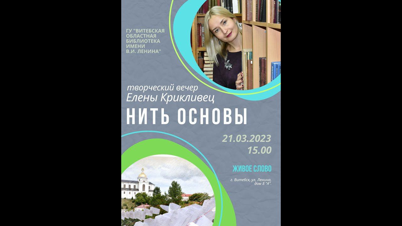 "Нить основы", творческий вечер доктора филологических наук, члена Союза писателей Беларуси, Союза писателей России, поэта Елены Крикливец. Витебская областная библиотека имени В.И. Ленина, 21.03.2023 года.