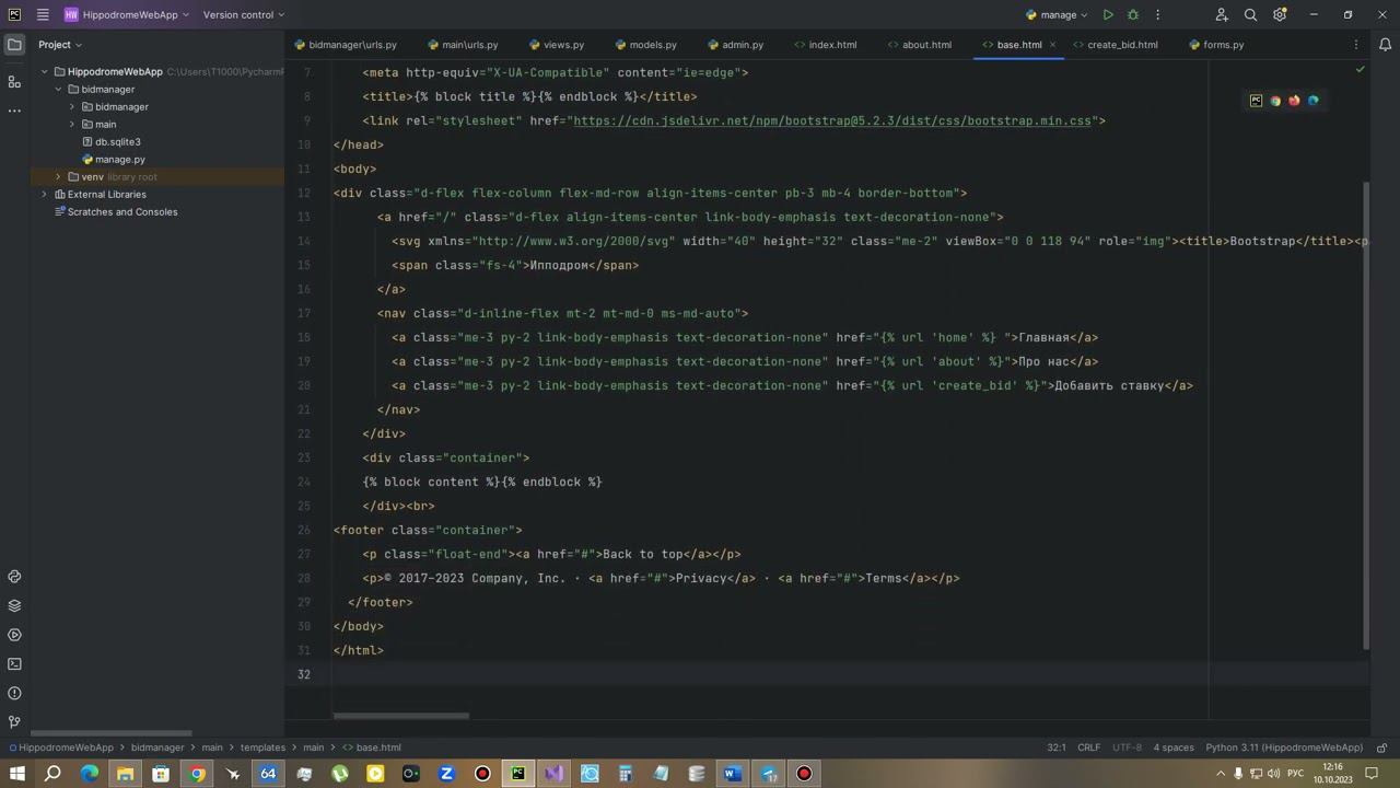 Ипподром Python Django Bootstrap