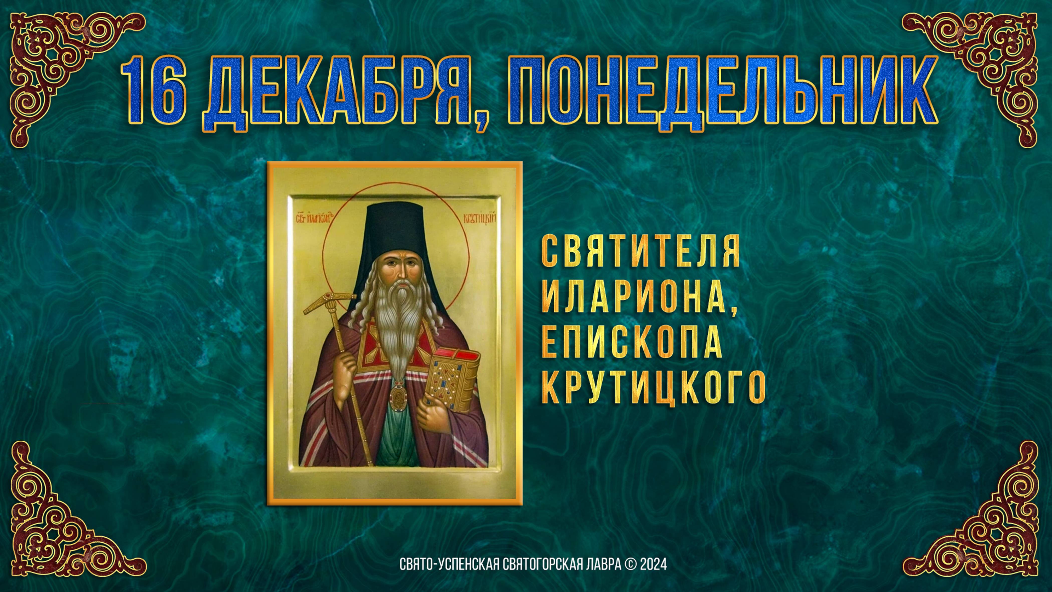 Святителя Илариона, епископа Крутицкого. 16 декабря 2024 г. Православный мультимедийный календарь