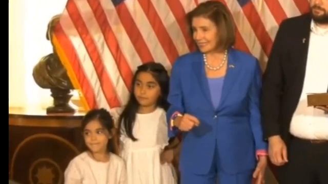 Нэнси Пеллоси локтем отодвигает девочку