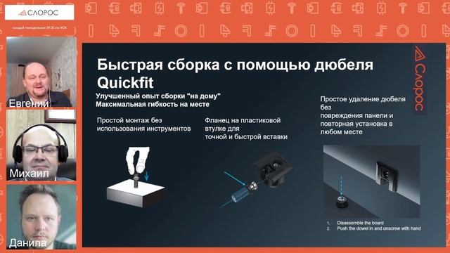 Новая System 6 - отличный выбор для сборки в ограниченном пространстве, где установлена "модульная мебель". Она позволяет легко и быстро создавать "непрерывную сборку" путем установки дополнительных элементов, например, в шкафы, гардеробные и системы хранения с полками. Это соответствует принципу модульности данного типа мебели с возможностью добавления или удаления полок и вертикальных перегородок в любое время и без необходимости разборки всего каркаса шкафа.Ребра жесткости на корпусе предотвращают вращение кулачка и, как следствие, смещение панели. Точная врезка облегчает установку на заводе-изготовителе и обеспечивает плавный и надежный процесс сборки. Таймкоды: 00:00 Приветствие 02:03 ПрезентацияSystem 6 2го поколения 02:42 Видеоролик 03:55 Целевой рынок 04:49 Преимущества System 6 2го поколения 08:43 Ассортимент заглушек 14:45 Мнение эксперта 21:11 Заключение Участники: Трофимов Евгений Славин Михаил Трофимов Данила Интернет-маркетплейс СЛОРОС : Эксцентрик SYSTEM 6 Drop-on 16 мм https://sloros.ru/mebelnaya-styazhka/styazhka-polkoderzhatel/sistema-6/ekscentriki-sistemy-6-gen-2/ekscentriki-sistemy-6-gen-2-v-plastikovom-korpuse/006975-877-001-ekscentrik-system-6-drop-on-16-mm-shlic-sverhu-i-snizu-belyy/ Дюбель SYSTEM 6, Quickfit, d5x11,5 мм https://sloros.ru/mebelnaya-styazhka/styazhka-polkoderzhatel/sistema-6/dyubeli-sistemy-6-gen2/dyubel-mebelnyy-titus-system-6-quickfit-expando-temno-seryy-5x11-5-mm-art-006576-880-001/ Заглушка к эксцентрику SYSTEM 6, никель https://sloros.ru/mebelnaya-styazhka/styazhka-polkoderzhatel/sistema-6/zaglushki-dlya-sistemy-6-gen-2/zaglushka-k-ekscentriku-system-6-nikel-art-006596-054-001/